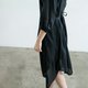 立领 胸前细褶 不规则裙摆 腰部绑绳