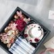 包装:黑卡精致花礼盒、雾面透明盖、精致缎带、纸提袋