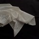 A white leopard pattern is silk-screen printed on an off-white cotton loan fabric that is fine and moderately transparent.