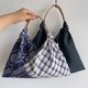 - 这是一款独一无二的 Azuma 包,由复古和服面料制成。 Azuma 包是一种传统的日本包,由一块布缝制在一起并沿对角线展开制成。 这是一款比普通 Azuma 包更小的手提包。特殊的皮革手柄比普通手柄更薄更短。