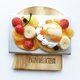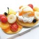 松饼上点缀着草莓、香蕉、冰淇淋、橘子、葡萄柚与蓝莓,