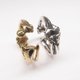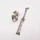 这款戒指是雕刻出人的整只大腿骨,包含股骨、胫骨、腓骨,然后凹弯后设计后,变成可以调整戒围的股骨戒。
