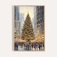 画面中央,一棵高耸的圣诞树立在城市广场,枝叶间挂满金色灯泡、彩球与星饰,如同一座被点亮的冬日灯塔,吸引人们从四面八方走来。树顶的小金星在淡淡的雾光中闪烁,仿佛为整座城市送上祝福。