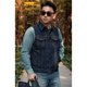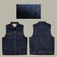 526v马甲是一款以type3版型改良的牛仔马甲,版型和布料均复刻自铁心,此款马甲衣长比市面上大部分马甲略短,视觉上拉长比例,使用四合扣设计,完美解决重磅牛仔扣子难扣的问题。