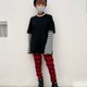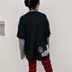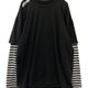 这款假两件式长袖T恤,巧妙地将条纹长袖T恤与贴布T恤叠穿的效果融合在一起。