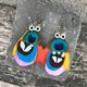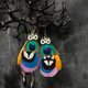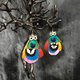 Materials : Peacock feathers, yellow-lavender-blue-and coral feathers with owl shaped brass part.