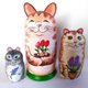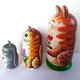 Matryoshka is a handmade painted wooden toy, a set of three dolls - two cats and a mouse.