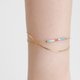 采用了较硬朗俐落的金色细蛇链,和视觉效果柔和浪漫的粉彩配色,简单又大器的都会风质感存在感超强,即使单条配戴效果也棒!