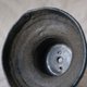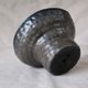 斑点土手捏制成,以细土条一圈一圈向上捏制,保留盘条的不规则痕迹,并施以白釉以电窑1230高温烧成,再经900度熏烧技法完成,熏烧后呈现层次丰富的灰黑金属光釉面。
