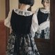 上身黑色暗紋提花+木耳花邊