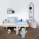 OYOY 之名源自 OY 此二字母 ; 1929至今,每一架来自丹麦的飞机都有 OY 的字样,从那时候开始,这两个字母便代表着来自丹麦的意思。创办人 Lotte Fynboe 喜欢各种颜色,形状,图案以及最单纯的材料,秉持 less is more 的思维,凭借童年的回忆,创作出一系列充满童趣,又不脱北欧基因的产品。