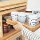 充满吸引力构造的"Ko-ko"里,还隐藏着很多大师的技艺。那就是居然层板能够直接拿出来,宛如就像在托盘上摆放餐具般的景象呈现在您眼前。上掀式门片才能做到的斩新设计,也会让您的茶友们紧盯着不放吧。若是这样的设计,即使不知不觉增加,放到最深处的小餐具也能够轻易地将层板拉出,拿出您想要的餐具。而清洁或是变更配置也可以很轻松地完成。