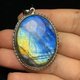 - 天然宝石台湾金工师手工纯银包镶 马达加斯加拉长石 宝石有天然矿缺介意者请勿购买
