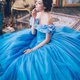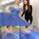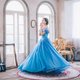 为LULU黄路梓茵独家订制-一字领露肩蝴蝶仙杜瑞拉礼服 修饰效果极佳的一字领露肩设计,修饰小脸并拉长脖子线条, 12根鱼骨的马甲雕塑设计,穿上腰围秒瘦三寸,梦幻迷人的篮紫色,有如童话故事中让仙女变身为万众瞩目焦点的仙杜瑞拉公主