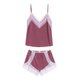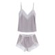- 选用16mm真丝双绉。质地轻柔、平滑光亮、坚韧、微有弹性。舒爽,耐洗是贴身衣服的最佳选择。领口及裤子下摆处的蕾丝装饰点作为细节点缀,花苞式的开衩结构的短裤,行走间尽是迷人优雅的气息。