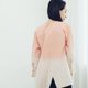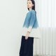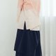 折衣半开襟长袖上衣为伞状的服装剪裁,特别的是,透过服装的松份与隐藏在口袋中的固定环与扣子,