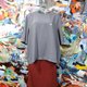 **日本中古灰色圆领中袖宽松版型尼龙材质上衣 二手古着珠宝首饰**