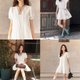 V領與蕾絲花邊的碰撞,凸顯女性優越的頸部線條。