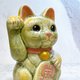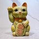 日本清水烧招财猫 绿黄 开运 右