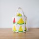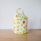 Randomly cut yellow watermelon illustrations are printed on the cloth to create a round-bottomed bucket-shaped tote bag!