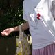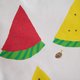In the front, there is a big watermelon and a beetle dyed in watermelon color. Behind is a tiny watermelon with different shapes.