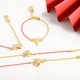 红绳在台湾传统文化中,象征祝福、吉祥、开运,设计师以红绳与金链各半的形式呈现手链,将传统与时尚结合。