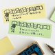 这款印章适用于便利贴,描绘了撕开的活页纸散落一旁,而有人在其旁安睡的景象。