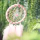 捕梦网材质 : 塑胶环、韩国绒绳(白色+粉红色)、线(线层线)、珠珠、羽毛