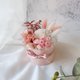 ・盆器尺寸约7x7(直径)x6(高)cm,含花材约12(长)x10(宽)x14(高)cm