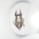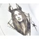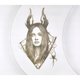 The crescent moon is painted with latex paint and engraved in the form of a witch in a web with a spider.