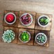 1. 铭月 ; 2. 乙女心; 3. 唐印; 4. 手指指; 5. 白凤; 6. 红球