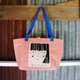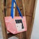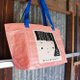 This shopping bag made from blue sheet fabric.