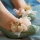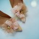 Organdy is nude gold beige and salmon pink. Organdy and immersive light catches the light and sparkling Swarovski will enliven the party scene! In your existing pumps, gentle flowers bloom gently at your feet just by putting sneakers on the sneakers.