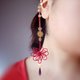 - 热情盛开、花瓣般饱满的鲜红中国结, 搭配色泽饱满、深邃迷人的捷克匕首形珠饰, 金色饰扣交织出东方韵味。