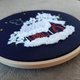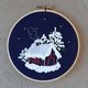 The embroidered picture Christmas house is an original gift. Volumetric hand embroidery is complemented by LED lights, a switch and a round battery. The picture is framed in a wooden hoop. For sending the picture is completed in a dense box, which makes it safe to travel.