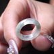 - 【名称】冰种翡翠戒指戒圈 【尺寸】国际10围 内径15.8mm 宽5.9mm 厚3.5mm 【产地】缅甸 【颜色】白 【备注】天然缅甸玉翡翠A货 【编号】20250225-42EL