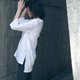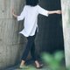 七分袖露出细细小手臂,圆领不露肩带,小V领透出微微性感。