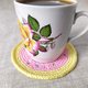- Absorbent coasters set of 4 funny add brightness and laughter to your home. Morning cup coffee or tea with calorie free donuts. What could be better! Perfect as a birthday gift to your friends and relatives. Coasters crochet with 100% cotton yarns in pink, white, orange and chocolate. Coasters can be used to protect surfaces from cold or hot drinks.