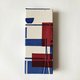 手工印花的布料上有一个由堆叠的盒子组成的架子的图案。