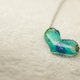 Work ID: 2655 / work code: 170216-164529 / American glass / about 21 × 31 × 7mm / green-based blue-green-based blue-based blue-violet system Iridesento (lame) Processing / phosphorescent processing / red bean chain stainless steel 42cm / -