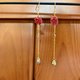 以手工金属线塑形打造出一片片小巧的花瓣,其鲜艳的红色系一眼便能锁定视觉焦点。实体的花芯增添了立体感与异材质的趣味。最引人注目的,是特别的长链设计,末端点缀着半透明水滴珠,让光线随着你的每一次摆动,都能闪耀着多层次的光芒。