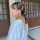 **头发多的可以直接将马尾塞在小扣上喔~**