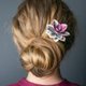 别致的木质发簪,点缀着以聚合物黏土制成、温柔细腻的大型“彩虹石莲”多肉植物。
