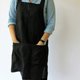 100% Linen Criss Cross Apron, Japanese Apron, No Tie Apron in BLACK-ONE size fit ALL