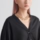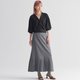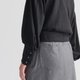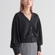 以日本的针织布料制成的开襟款式。刻意在落肩处以合折方式表现增加袖管的宽度。衣身下摆贴合腰部,上宽下窄的衣身让整体轮廓不会过度膨松。带有女性的典雅却又蕴藏了些微的气势,下着无论搭配裤装或是裙装都能轻易融入造型。此款式有黑色跟灰色可供挑选。