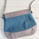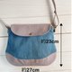 I used bleached denim for the base part, and used purple Kurashiki canvas for the flap, switching part, and strap to make it bi-color.
