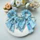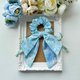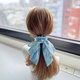使用韩国品牌和美国品牌的两款棉布搭配制作成长尾蝴蝶结、加上缎带和钉珠做成的发圈,气质浪漫,无论上班或休闲聚会都适合配戴。