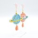 蓝色刺绣太空船缀水晶宝石装饰心型图案耳环