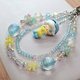 16mm蓝色夜光版金箔星光 12mm白色夜光版金箔海蒂珠 8mm斜角粉方糖奥地利水晶 7mm蓝色车轮珠奥地利水晶 6mm白色方糖奥地利水晶 4mm白色花球奥地利水晶 琉璃樱花 质感CP值绝对很可以的萌粒 每条都是纯手工制作,希望大家喜欢
