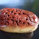 【作品描述】此作品选用寿山石中朱砂高山石为原料,雕刻师利用其天然的巧色,通过巧妙的构思,俏色巧雕,上半端雕刻两只栩栩如生的飞龙在天对视,将巧色融为作品的组成部分,雕工细腻流畅,刀法细致干练,寓意祥瑞。作品饱满圆润很适合当作一个轻巧的摆件,是难得展现的作品!